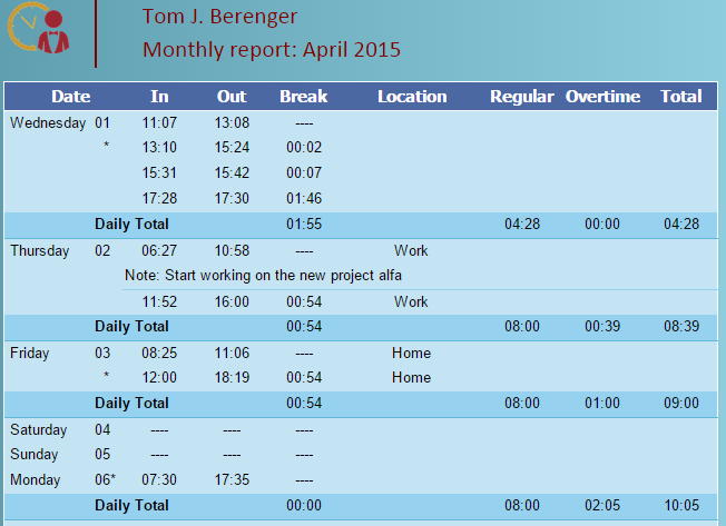 Notas: Si es seleccionada la característica «Notes», los empleados podrán proporcionar una descripción corta del trabajo realizado inmediatamente luego de presionar el botón de salida (Out).